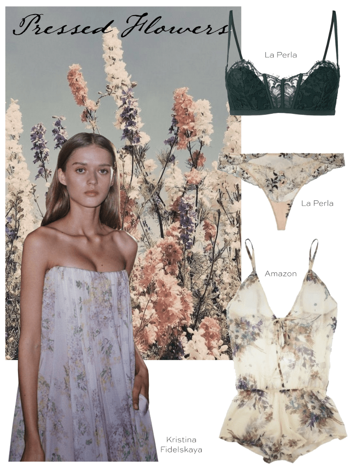 Boho girl vibes continue in this botanical retro trend. Ubiquitous floral prints draw inspiration from fields of wild flowers, watercolor florals, and floral photography (digital prints). Ditsy floral prints are trending among the “Cottagecore” girls. Fresh flowers and nature appear in textured multicoloured embroideries. Lace follage in a grass green palette inspire spring botanical style.