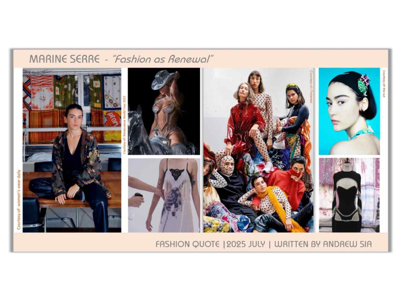We are using Marine Serre’s quote as, “We have to create new ways of making fashion — not just new clothes.”